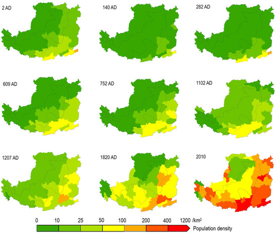 - Lu, Y.; Teng, Z. A Study of Historical Population by Province in China (2 Volumes); Shandong People’s Publishing House: Jinan, China, 2006. [Google Scholar]