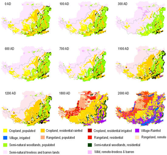 - Fang, X.; Ye, Y.; Zhang, C.; Tang, C. Cropland cover change and its environmental impacts in the history of China. J. Palaeogeogr. 2019, 21, 160–174. [Google Scholar] [CrossRef]