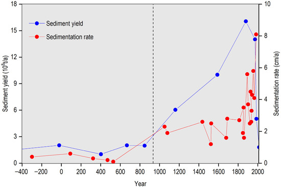 3.2. Chain Response of Sediment Yield and Sedimentation Rate