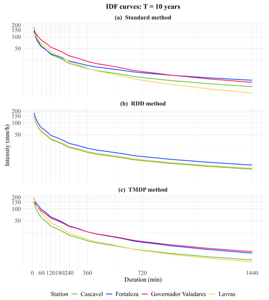 - Torres, I.P.; Cecílio, R.A.; de Almeida, L.T.; Abreu, M.C.; da Silva, D.D.; Zanetti, S.S.; Xavier, A.C. Rainfall Intensity–Duration–Frequency Curves Dataset for Brazil. Data 2025, 10, 17. [Google Scholar] [CrossRef]