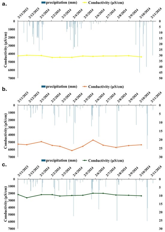 - Redox conditions and trace element mobilization: Negative ORP values in all sites suggest reducing environments, which favor the mobilization and transport of trace elements, such as Mn, Fe, and As.