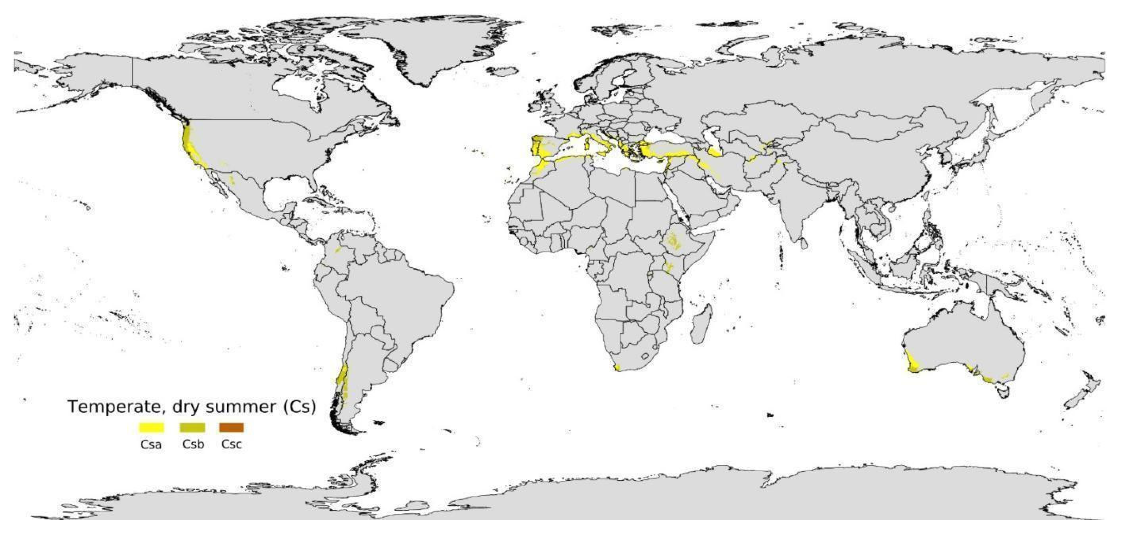 - Beck, H.E.; Zimmermann, N.E.; McVicar, T.R.; Vergopolan, N.; Berg, A.; Wood, E.F. Present and Future Köppen-Geiger Climate Classification Maps at 1-Km Resolution. Sci. Data 2018, 5, 18024. [Google Scholar] [CrossRef]