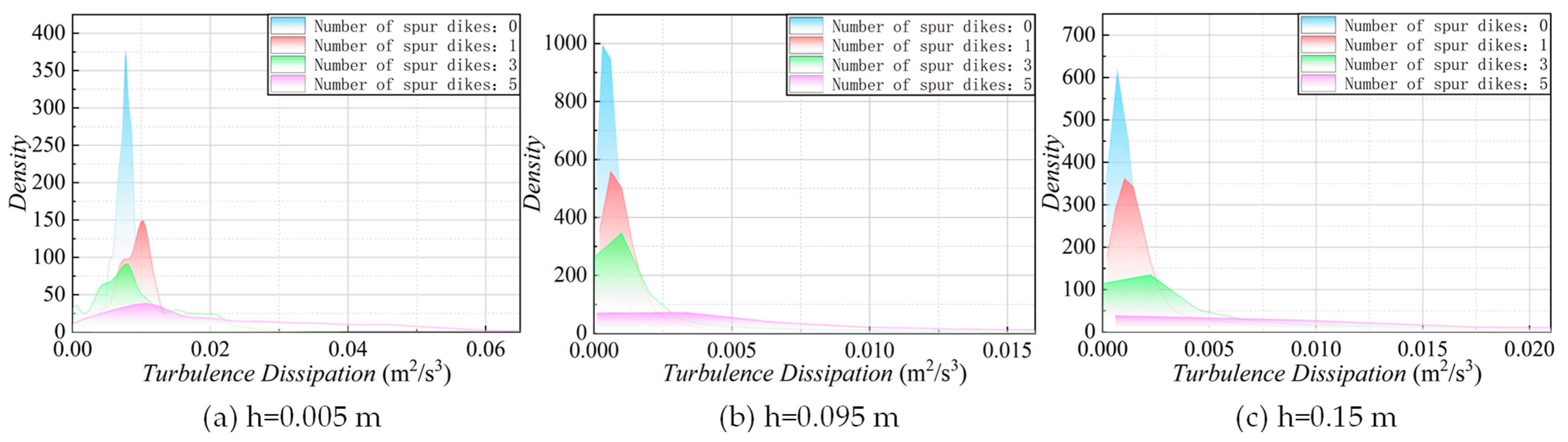| Number of Spur Dike | Relative Depth | Velocity | TKE | ε | Number of Spur Dike | Relative Depth | Velocity | TKE | ε |