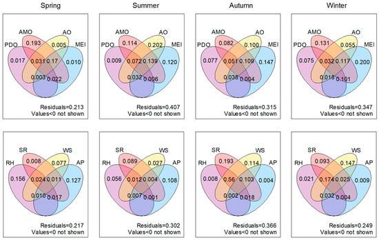 Analysis of variance of the influencing factors of seasonal precipitation based on partial redundancy analysis.
