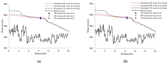 3.2. Water Level Variation Along the Course and Validation of Simulation Result