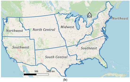 - Configuration 1 (Manual Zoning): The contiguous United States was subdivided into predefined geographic zones for region-specific predictions.