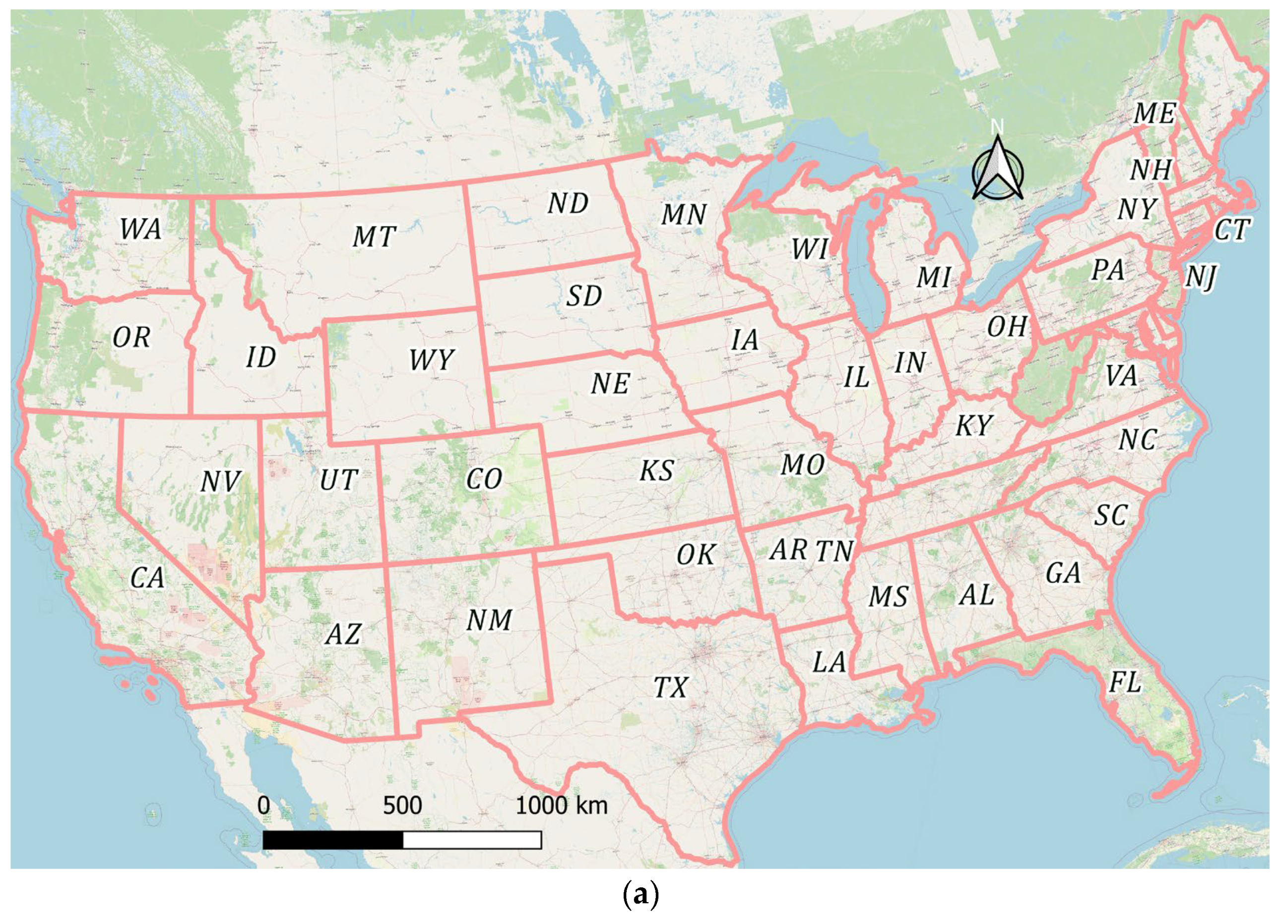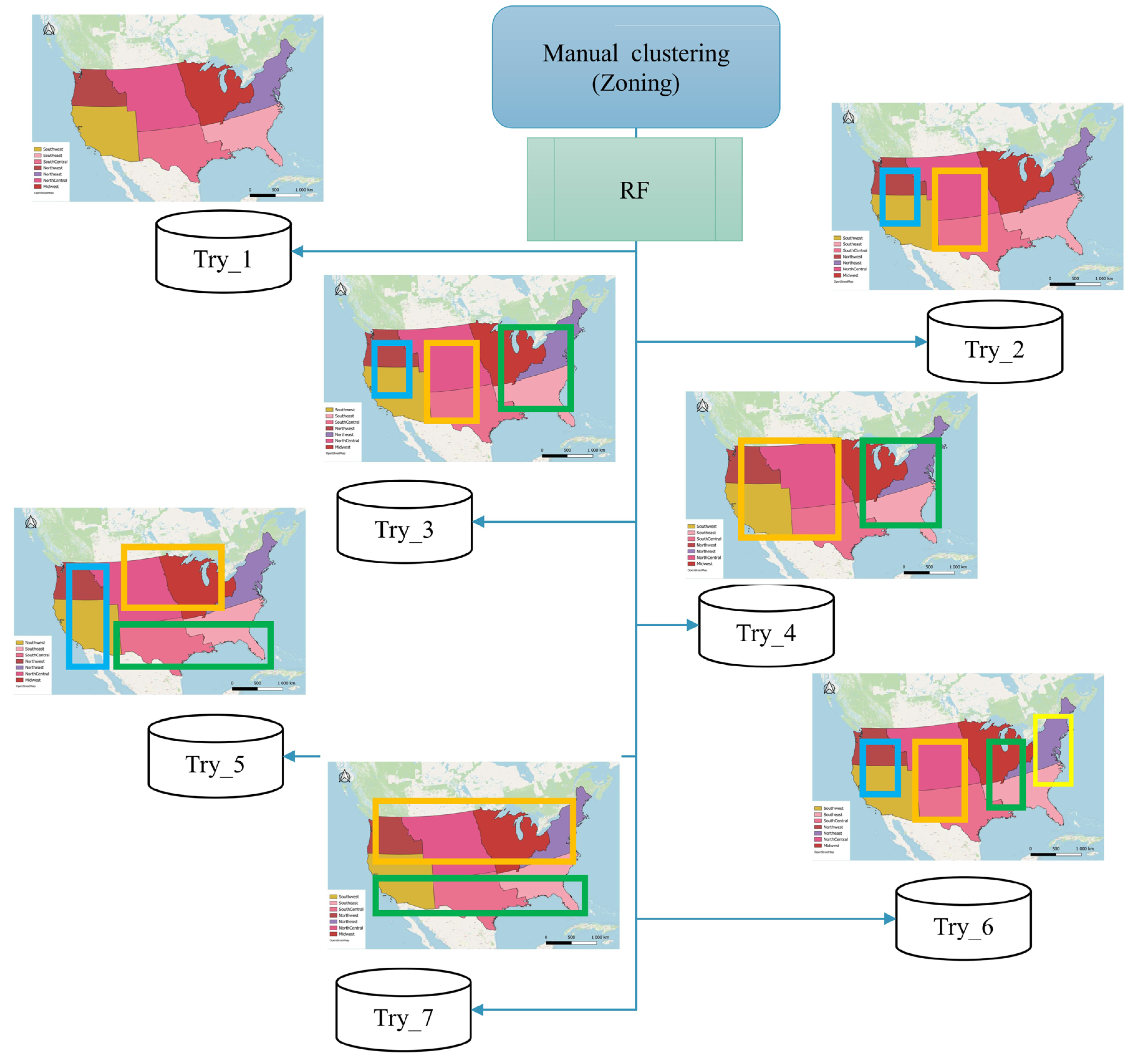 - Configuration 1 (Manual Zoning): The contiguous United States was subdivided into predefined geographic zones for region-specific predictions.