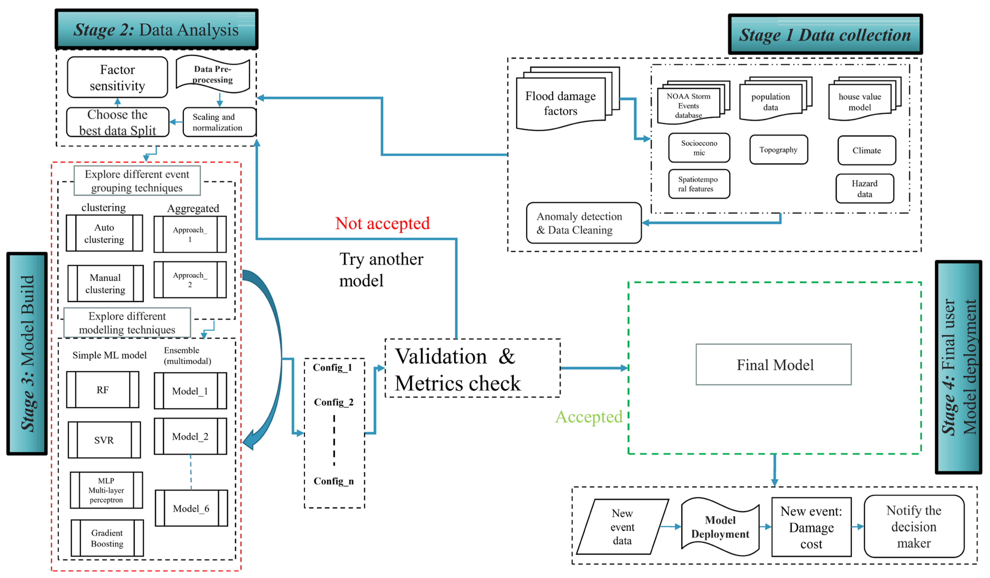 - Snehil; Goel, R. Flood Damage Analysis Using Machine Learning Techniques. Procedia Comput. Sci. 2020, 173, 78–85. [Google Scholar] [CrossRef]