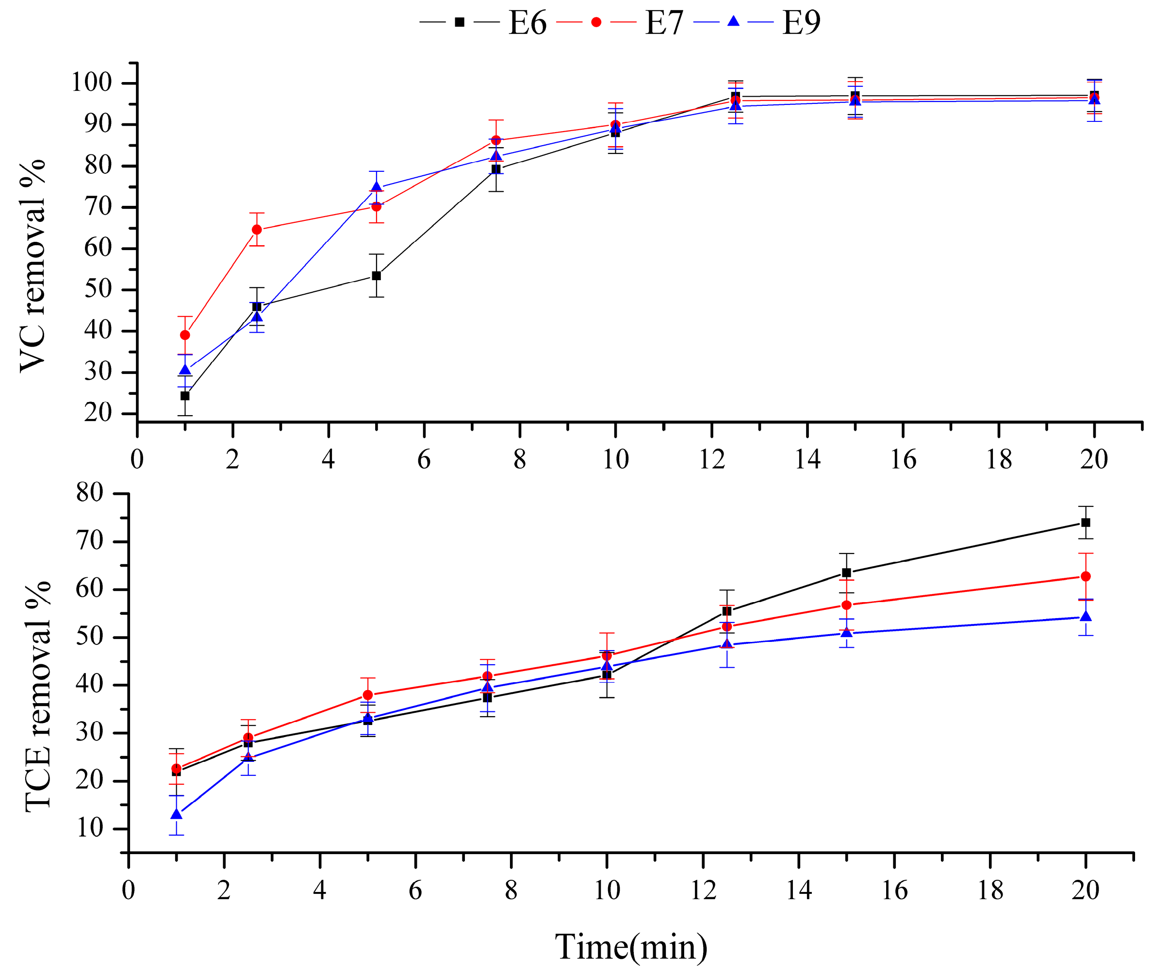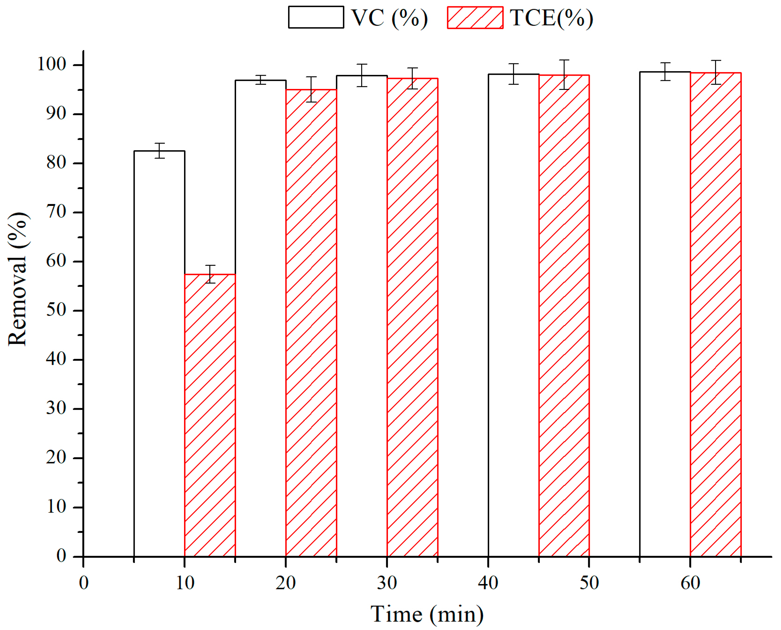 8]. This provided the rationale for examining the efficiency of the electrochemical treatment for TCE alongside VC.