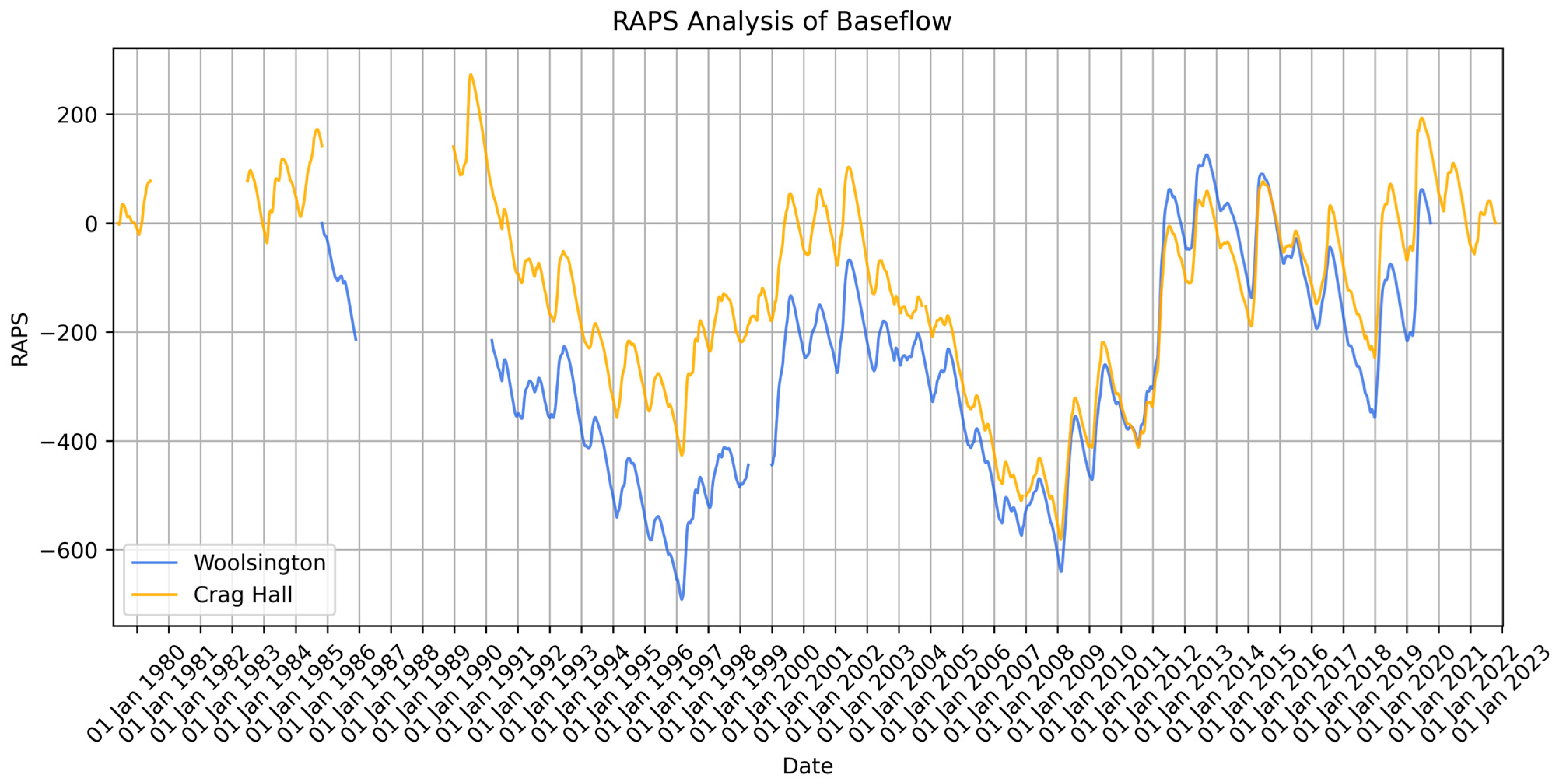 3.5. Timeseries Analysis—Rescaled Adjusted Partial Sums (RAPS)