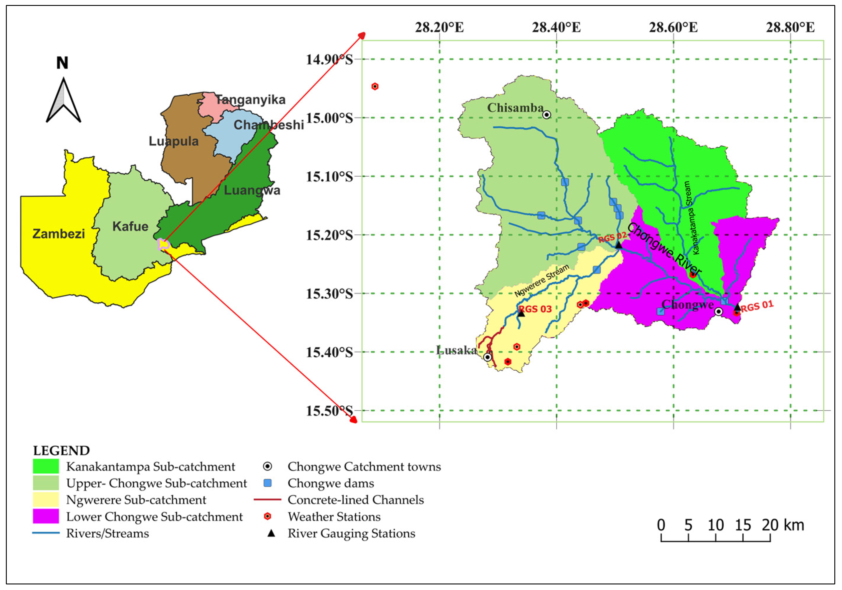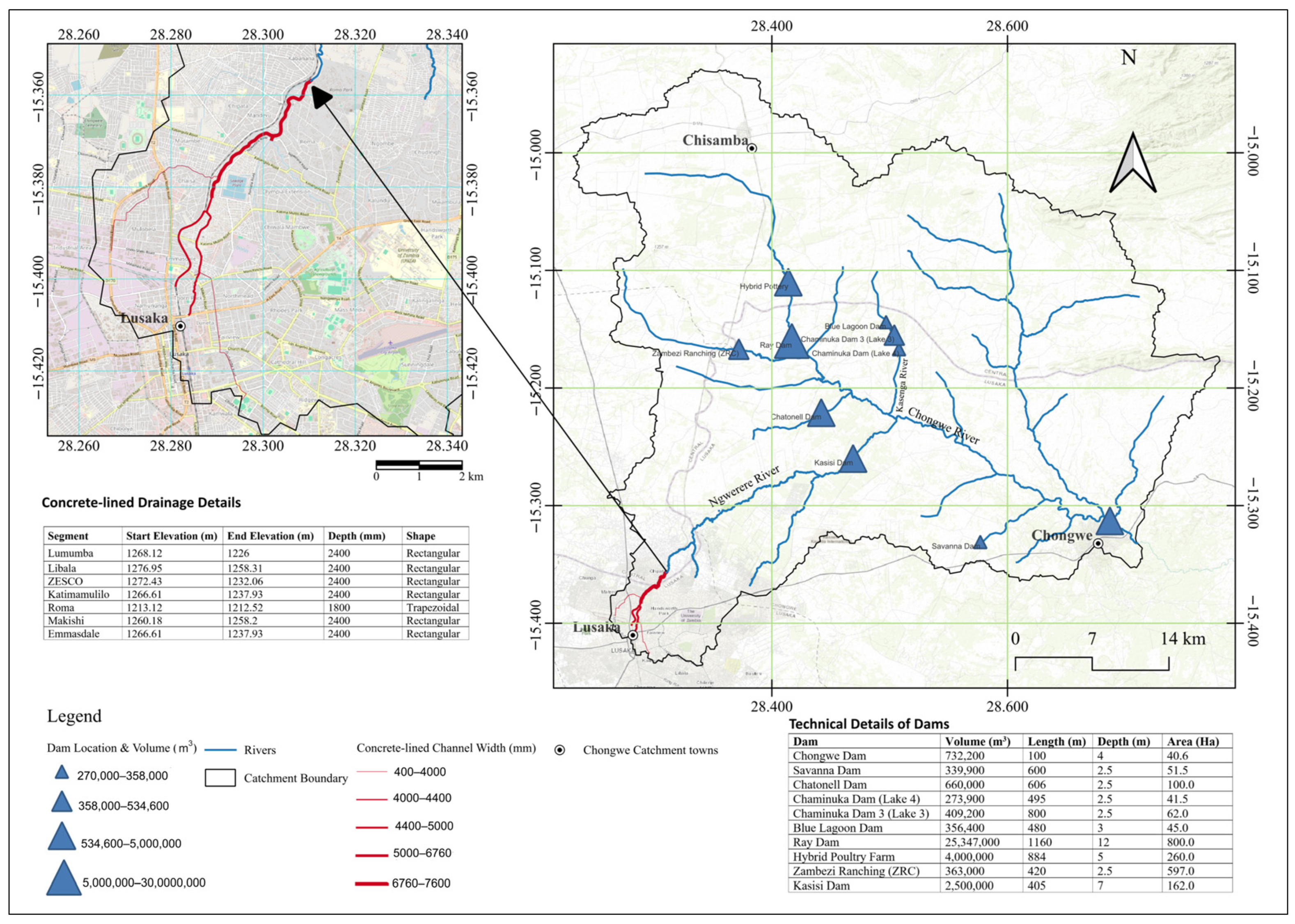 37] attributed rising wet-season flows to the rapid expansion of buildings and road infrastructure in Lusaka. Our study adds new evidence by showing that the observed increases in flow in wet seasons may further be linked to the construction of the 21 km concrete-lined drainage system (the Bombay drain) in Lusaka, which enhances runoff concentration and accelerates peak-flow delivery to the Chongwe River.