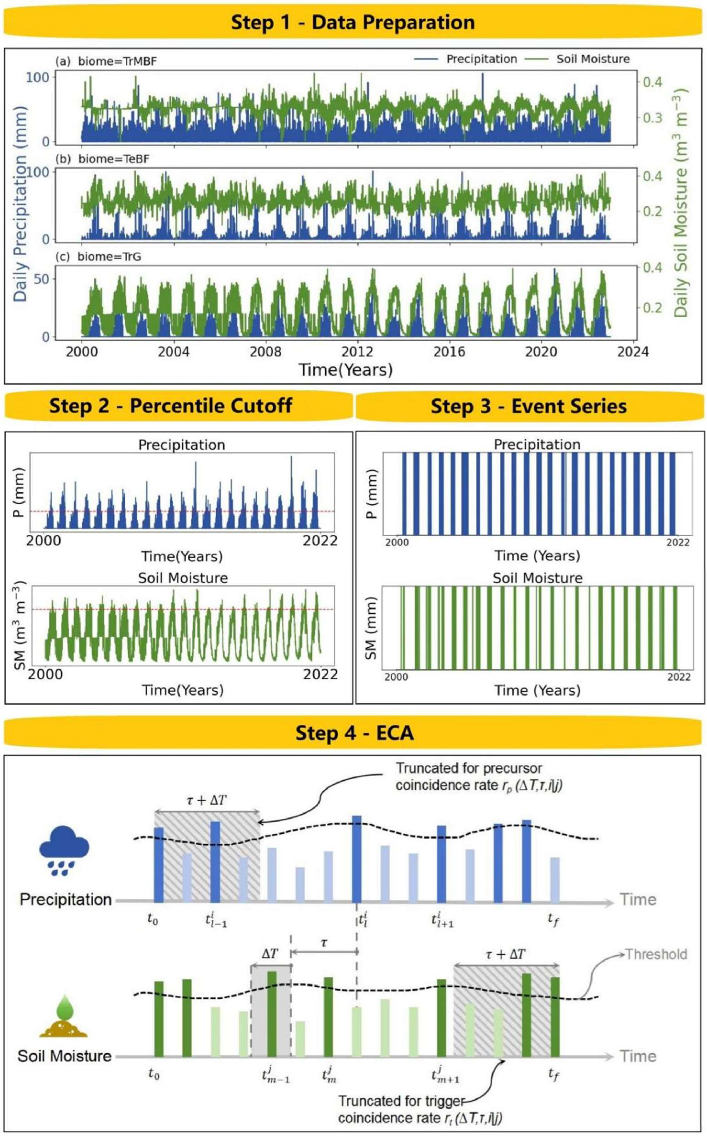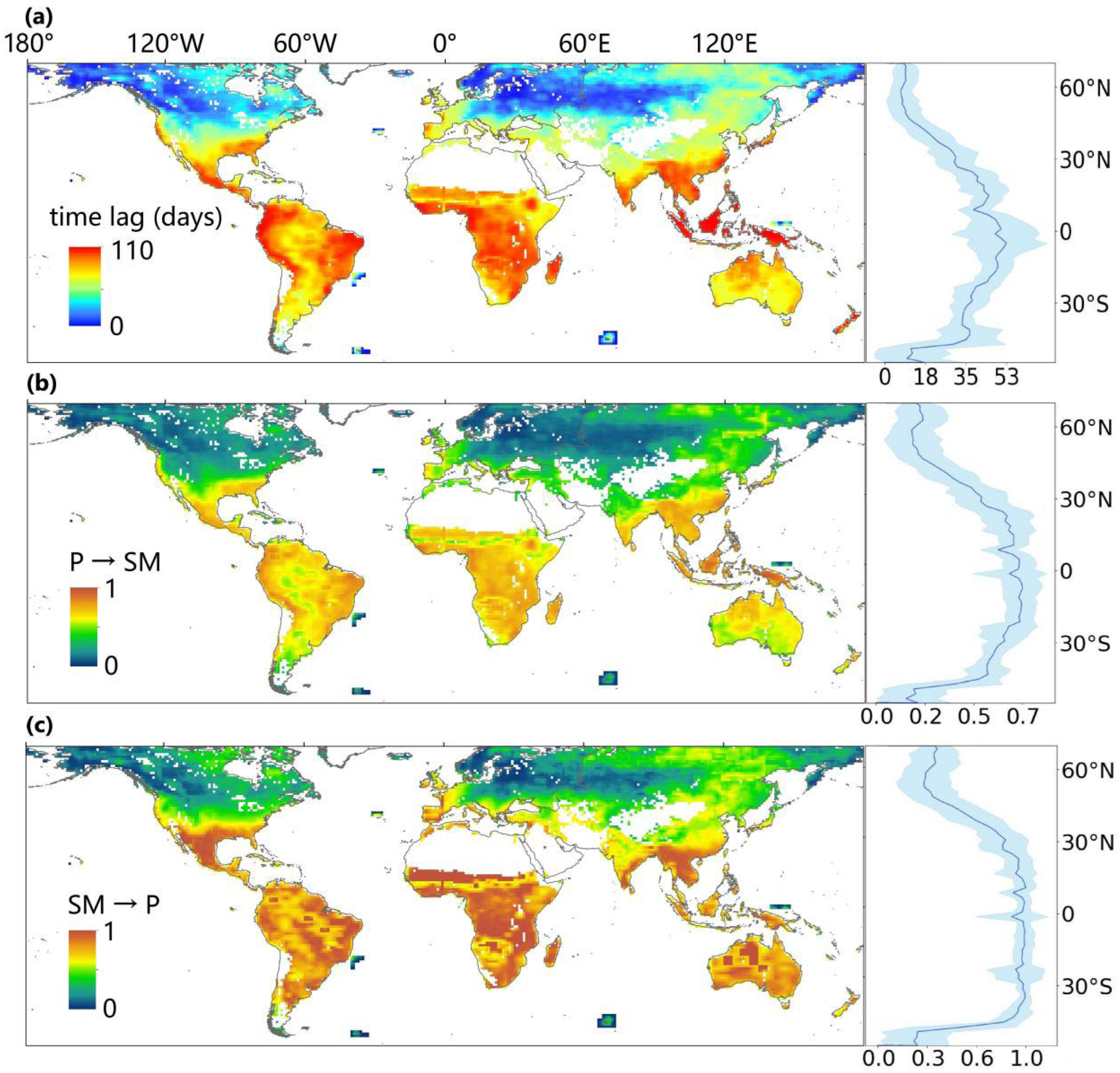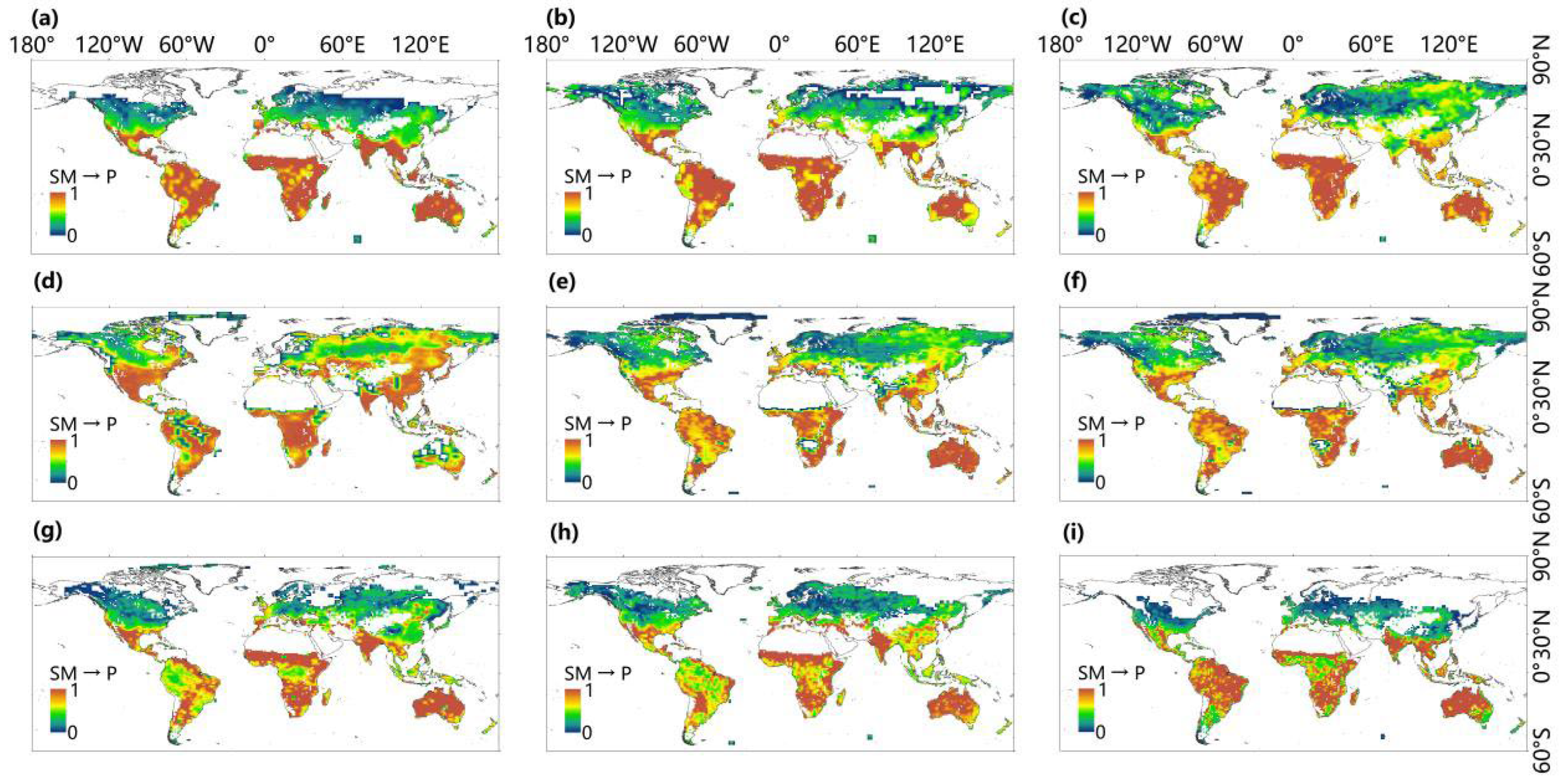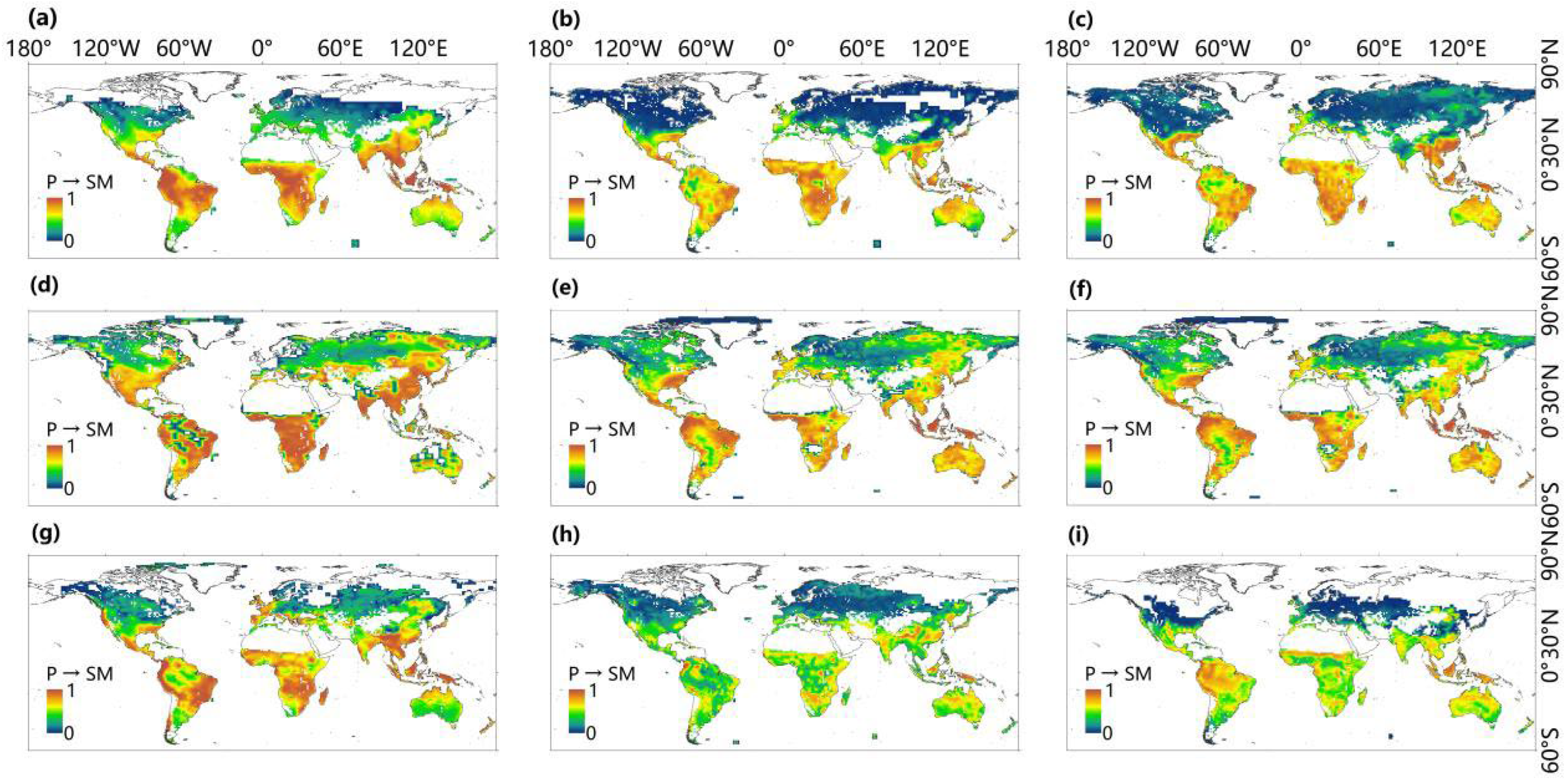 - Sun, J.; Yang, K.; He, X.; Wang, G.; Wang, Y.; Yu, Y.; Lu, H. Causal Pathways Underlying Global Soil Moisture–Precipitation Coupling. Nat. Commun. 2025, 16, 8935. [Google Scholar] [CrossRef] [PubMed]