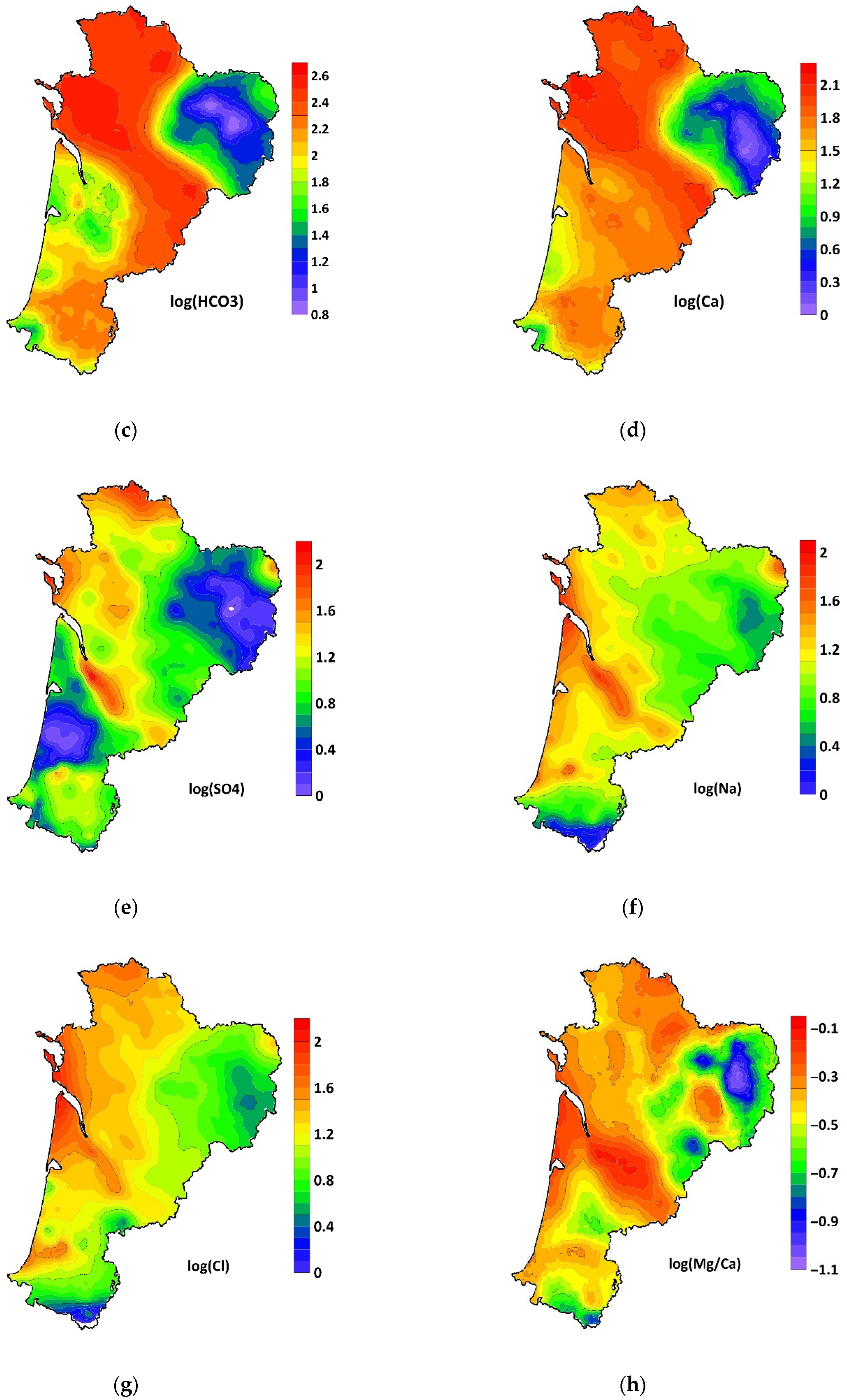 - Bousouis, A.; Bouabdli, A.; Ayach, M.; Ravung, L.; Valles, V.; Barbiero, L. The Multi-Parameter Mapping of Groundwater Quality in the Bourgogne-Franche-Comté Region (France) for Spatially Based Monitoring Management. Sustainability 2024, 16, 8503. [Google Scholar] [CrossRef]