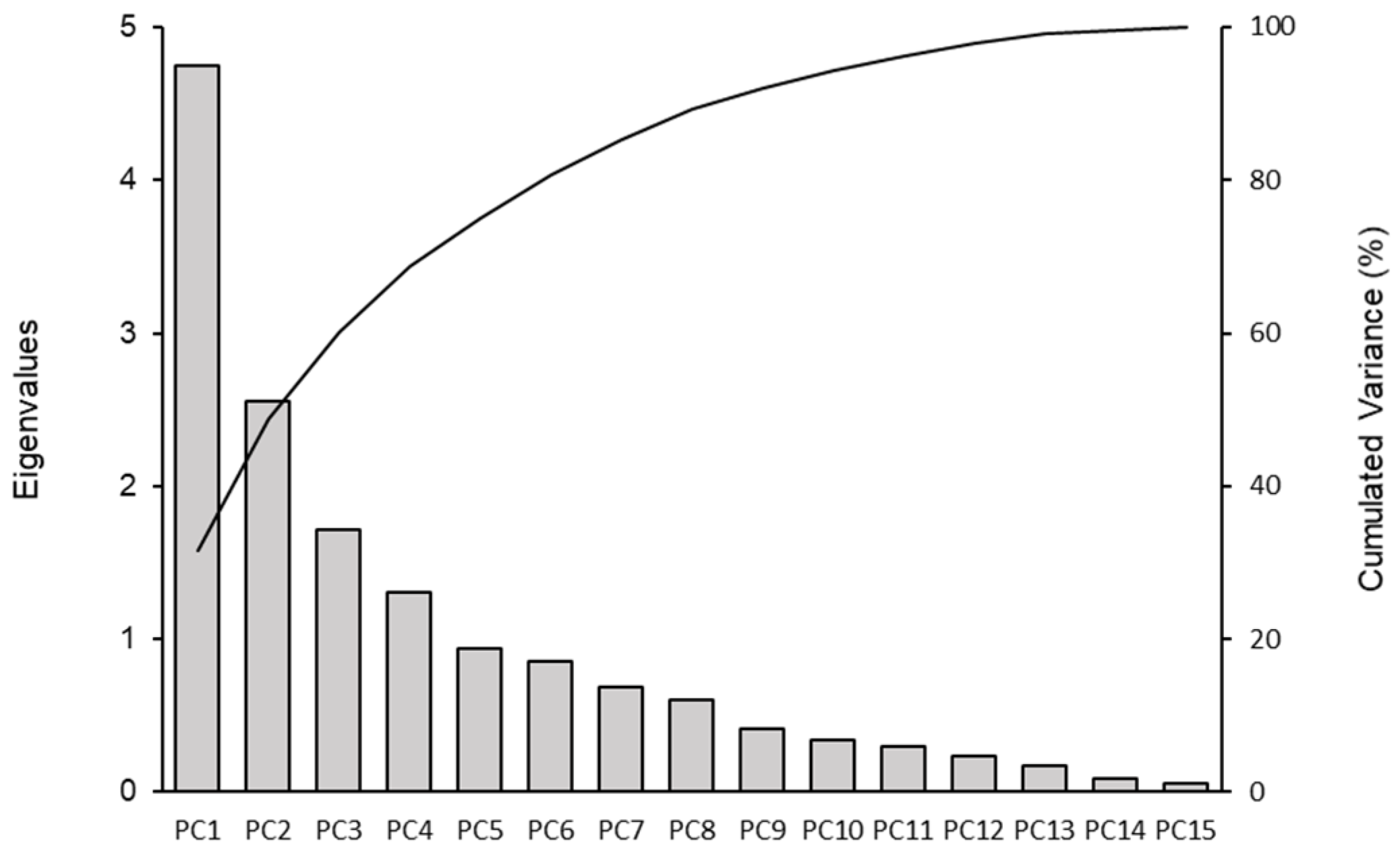 | Eigenvalue | 4.746 | 2.558 | 1.712 | 1.302 |