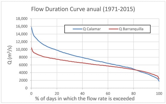 The FDC for Calamar and Barranquilla, the inflection point is above 5000 m3/s.