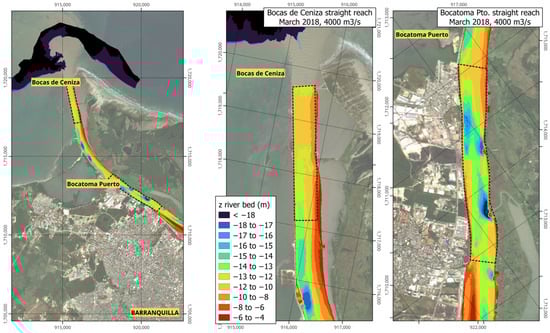 3.2. Hydraulic and Sedimentological Characteristics of the Magdalena Riverbed