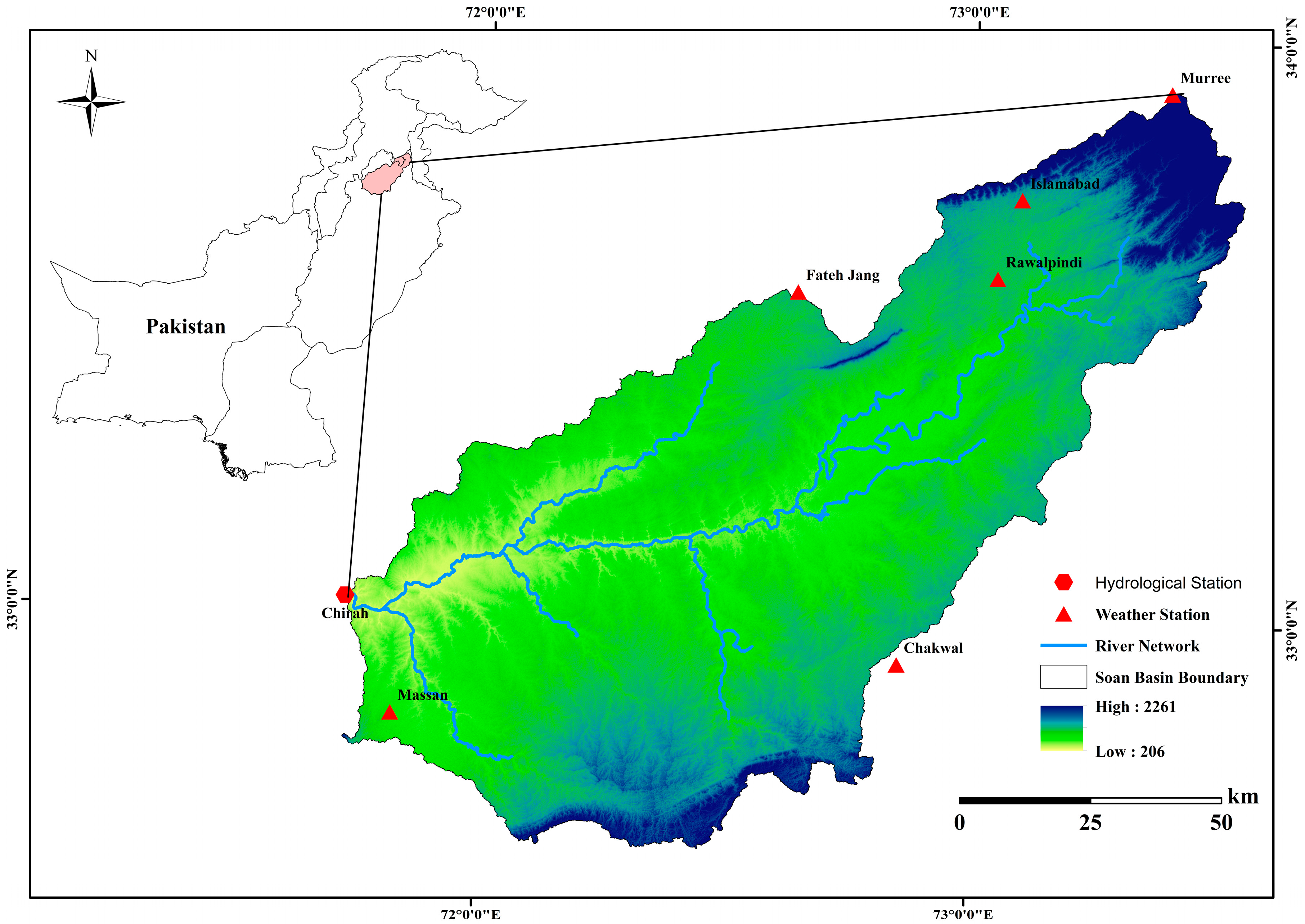 One of such rainfall-dominated watershed is the Soan River Basin (SRB), which is one of the main tributaries of the Indus River. The basin empties into the Potohar Plateau and the Murree Hills to the Indus River near Makhad [