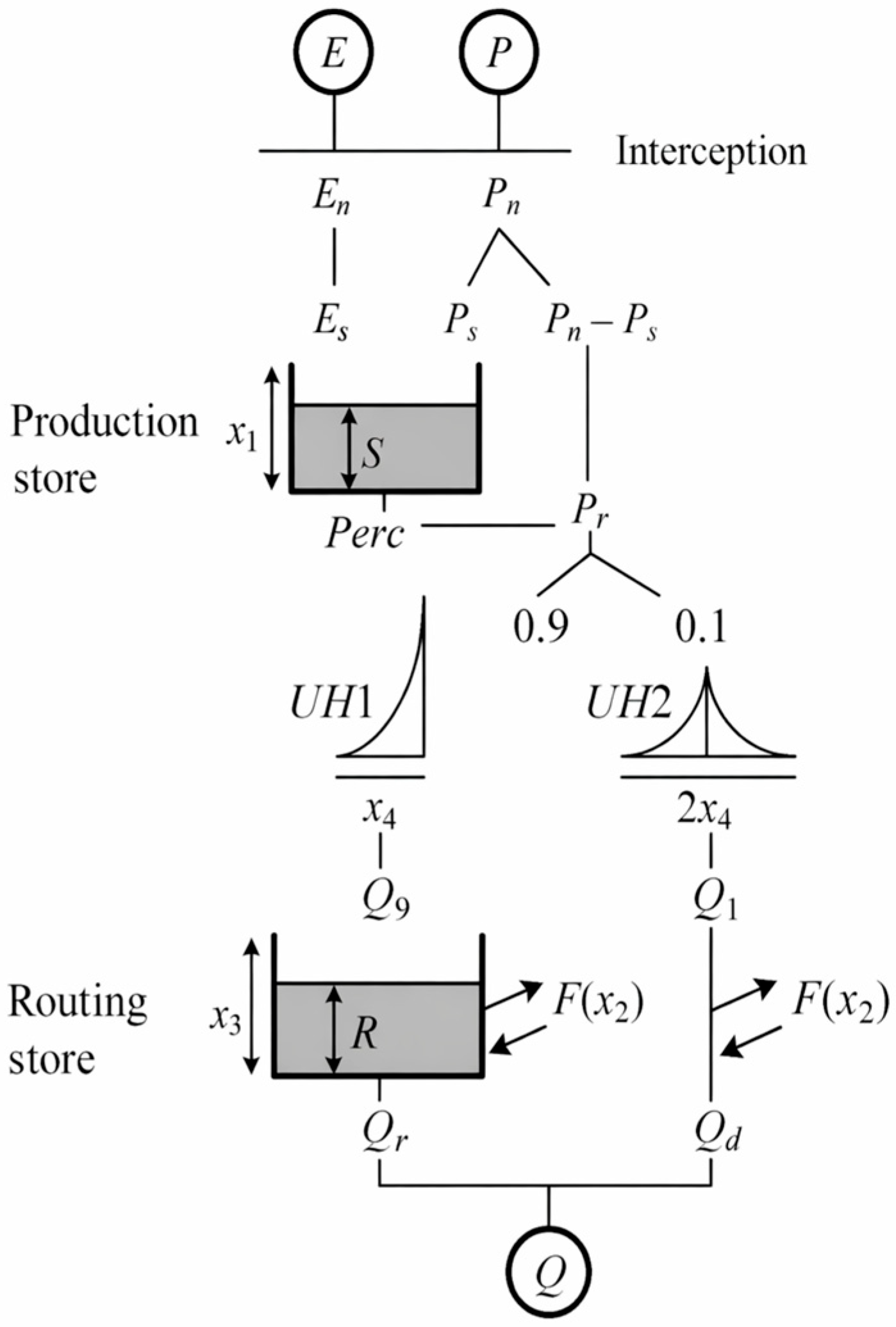 - Wei, X.; Guo, S.; Xiong, L. Improving Efficiency of Hydrological Prediction Based on Meteorological Classification: A Case Study of GR4J Model. Water 2021, 13, 2546. [Google Scholar] [CrossRef]