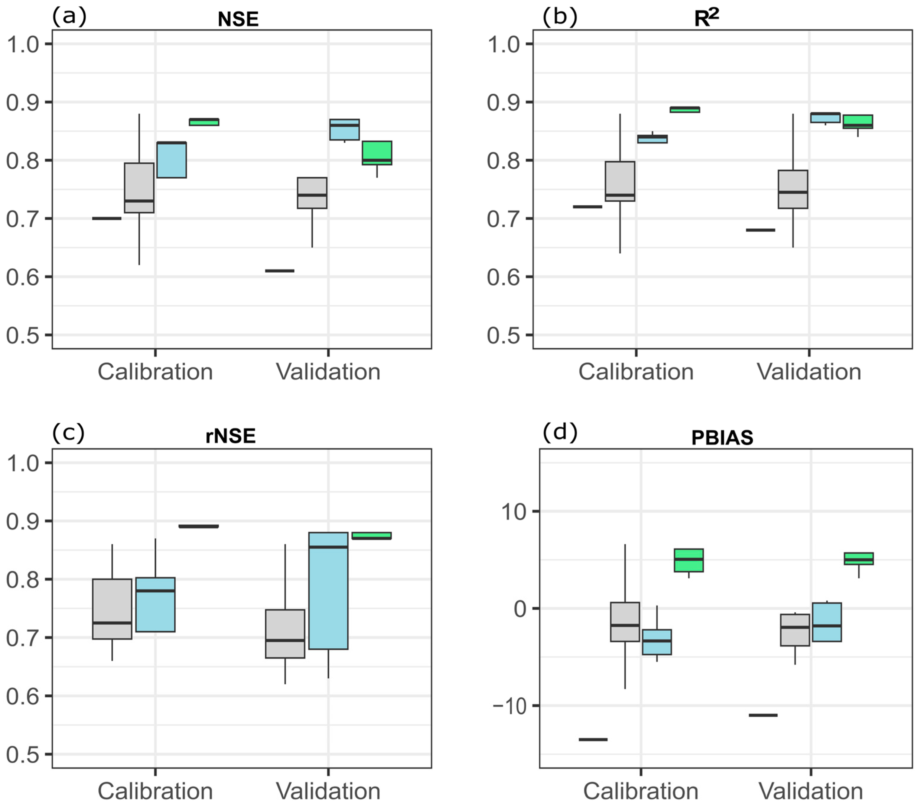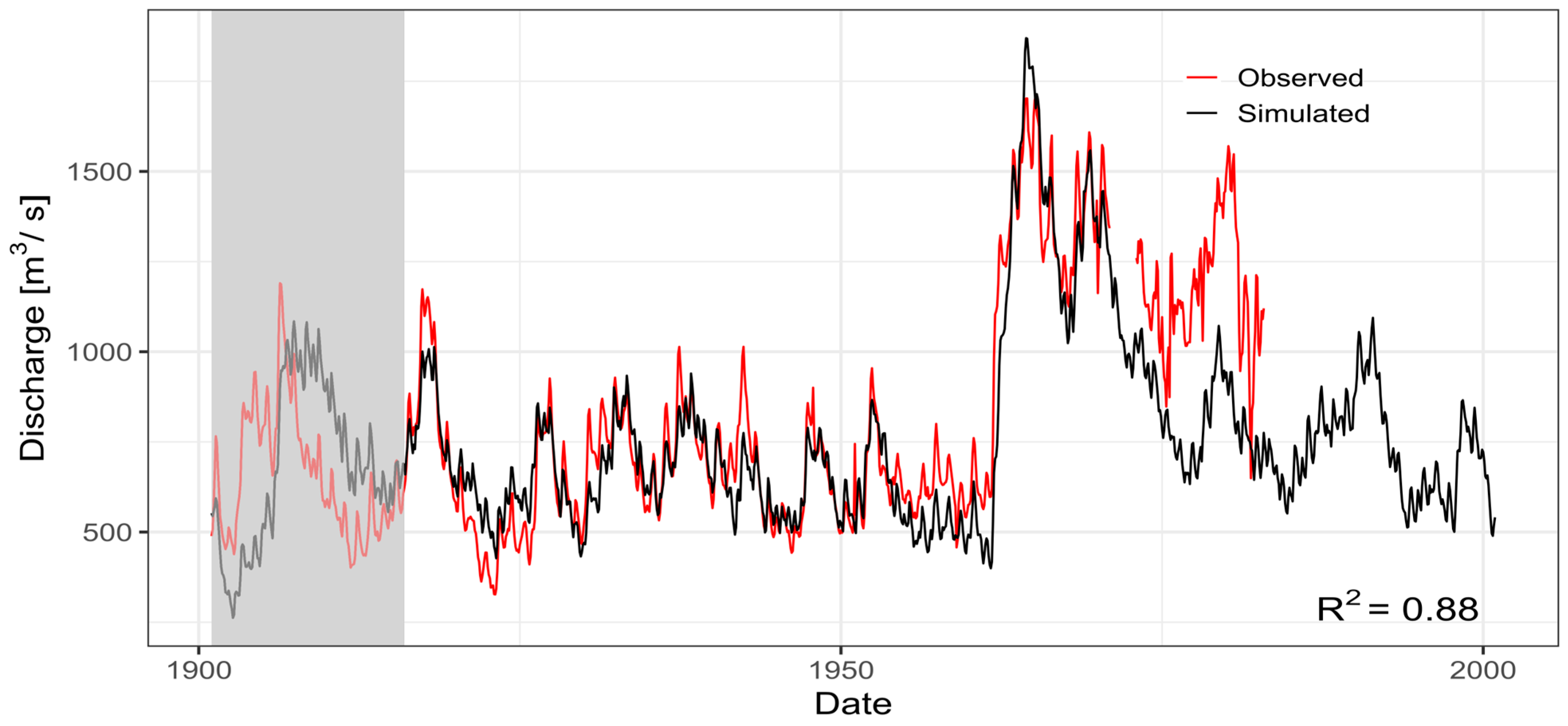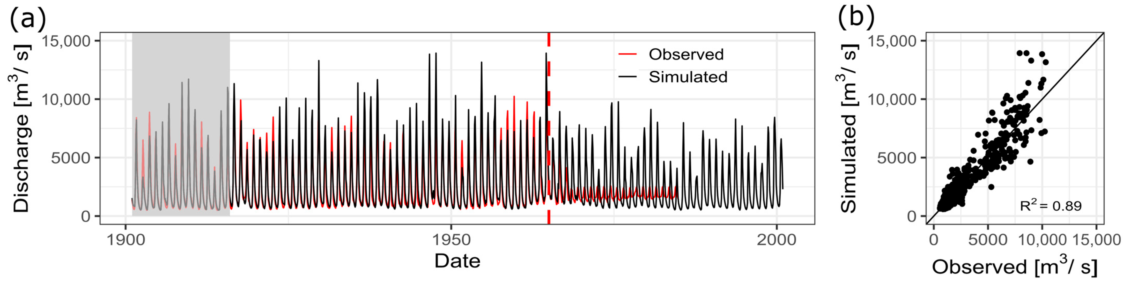 3.2. Time Series Analysis: Observed vs. Simulated Discharge