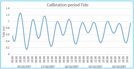 The tide data (hourly) are extracted from WXTide32 software freely available on Internet and cover the periods shown in Table 1. Figure 3 show the tide of calibration period.