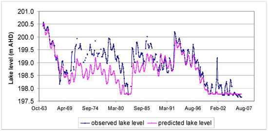 Lake Linlithgow measured water levels and a comparison to modeled results for the period 1964–2007.