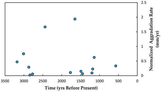 In some instances, it was unclear if a specific unit consists of one event or of a series of events that are not clearly separated by changes in texture or structure. In such cases a field judgment was made. An example is the 1000 years BP and 1100 years BP events. The corresponding radiocarbon dates for these events are 970, 1070, 1130, and 1140 ± 30 years BP. Given the relatively small range of dates, these four dates could represent the same event. However, the location of the dates indicated that they represented two distinct events.
