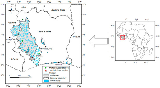 44. Soro, G.E.; Yao, A.B.; Kouamé, Y.M.; Goula Bi, T.A. Climate Change and Its Impacts on Water Resources in the Bandama Basin, Côte d’Ivoire. Hydrology 2017, 4, 18. [Google Scholar] [CrossRef]