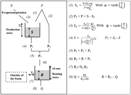 Figure 3. Scheme of the conceptual model GR2M (Source, [37]).