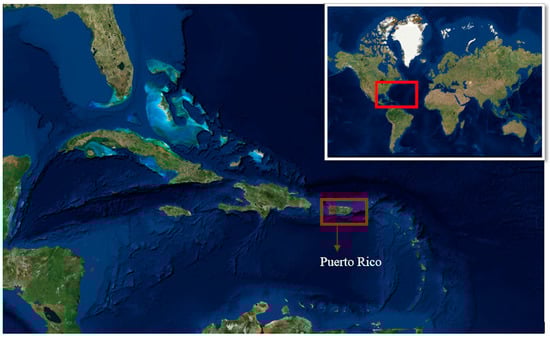 According to Smith et al. the frequency with which a hurricane passes directly over Puerto Rico is relatively low; however, partial impact on the Island has occurred more often []. This section presents a short description of the effects of Hurricane Georges during its passage through the Atlantic Ocean and a description of the area of interest selected for testing the methodology.