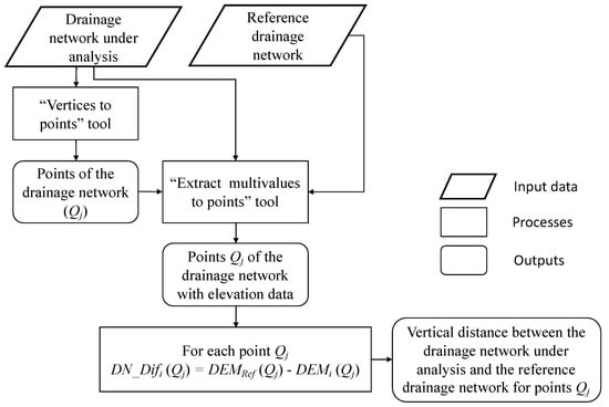 Flowchart of the procedure to assess the vertical accuracy of the drainage networks.