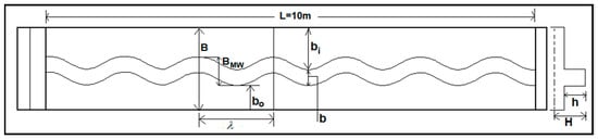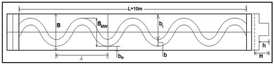 Experimental investigations are carried out in meandering compound channels with different sinuosity at the hydraulics-engineering laboratory under the department of civil engineering, National Institute of Technology Rourkela (NITR), India. The meandering compound channels are cast out of perspex sheets inside the flume of 10 m long, 1.7 m wide, and 0.25 m deep. The channel surfaces consist of the roughness coefficient as 0.01. Three types of experimental channels are set up for the present research works, as shown in Figure 1, Figure 2 and Figure 3. In the first and second type of meandering compound channels (NITR Type-I and NITR Type-II), the main channel is meandering with sinuosity 1.37 and 1.035, respectively, and is flanked by straight floodplain on both sides. The third one (NITR Type-III) is a doubly meandering compound channel, where both the main channel and floodplain levee are meandering with different sinuosity. Details of the experimental setup of these compound channels shown in Table 1.