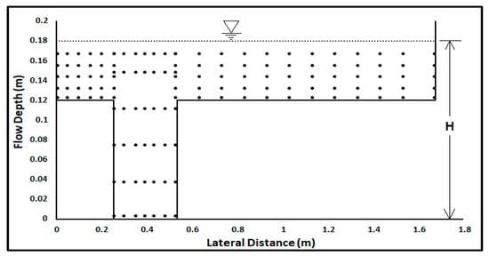 Grid Arrangement of Points for experimental measurements across the channel section.