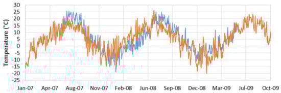 - Craigmile, P.F.; Guttorp, P. Space-time modelling of trends in temperature series. J. Time Ser. Anal. 2011, 32, 378–395. [Google Scholar] [CrossRef]