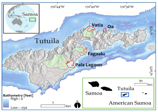 - Jacob, L.; Wiles, P.; Aitaoto, T.; Yuen, S.L. Coastal Currents in American Samoa. Their Role in Marine Protected Area Network Design. Available online: https://www.scribd.com/document/115525795/Coastal-Currents-in-American-Samoa (accessed on 31 October 2018).