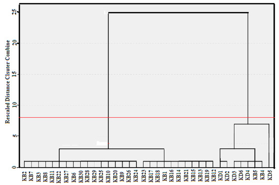 Dendrogram from cluster analysis of water samples depicting 2 clusters.