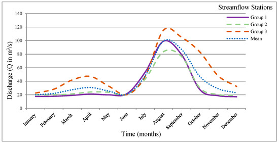 The mean monthly river discharge in ARB at Group 1, 2 and 3.