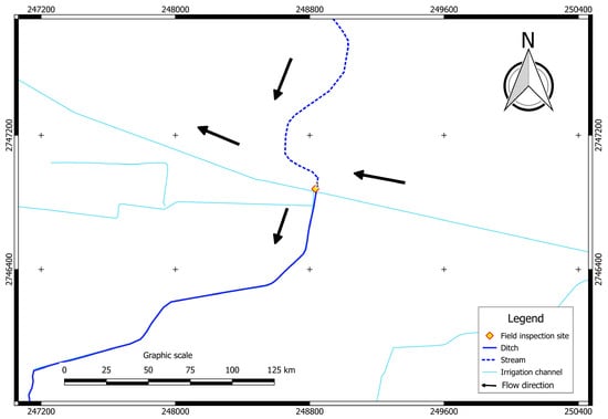 Due to limitations in the resolution of satellite images, 12 sites were inspected in the field to confirm if natural or artificial watercourses crossed the irrigation channels or they only drained to them (Table 1).