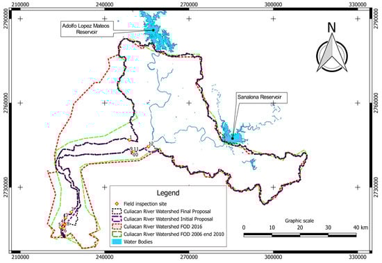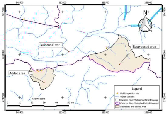Location of the verification sites to identify possible modifications in the watershed divide proposal.