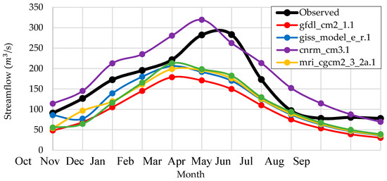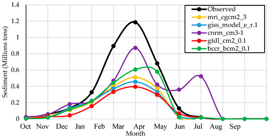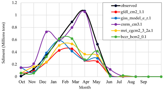 In addition, all climate models showed the same behavior in all 12 months except the cnrm_cm-3.1 model, the simulated sediment of which was estimated to be higher than the other climate models.