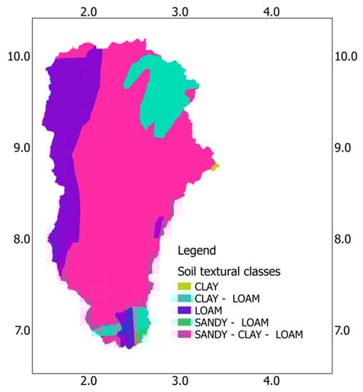 Ouémé catchment soil textural classes map.