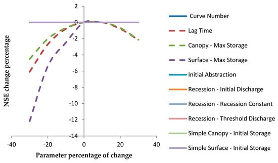 Moreover, the maximum surface storage (Surface—Max Storage) is revealed to be the most sensitive parameter followed by the lag time and the maximum canopy storage (Canopy—Max Storage) as illustrated on Figure 9.