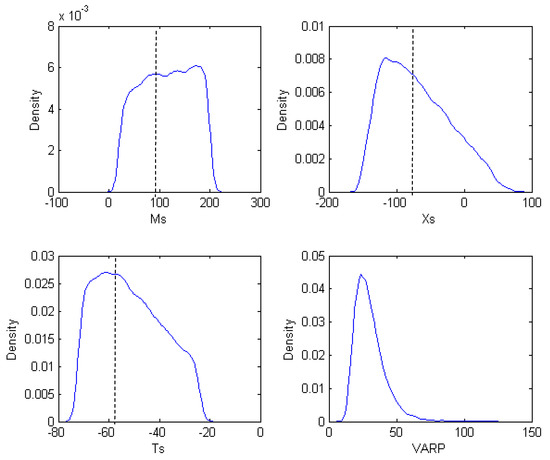 Generally speaking, the posterior PDFs for both Run 1 and Run 2 present a skewed and smooth status (Figure 5 and Figure 6). Long right tails are all present, except the PDF of Ms in Run 2. However, differences are significant for the posterior PDFs between Run 1 and Run 2, especially for Ms and Ts. In Run 1, the skewness of Ms PDF is large and the Ts PDF shows an obvious plateau, while in Run 2, the skewness of Xs is significant and the Ms PDF shows a plateau.
