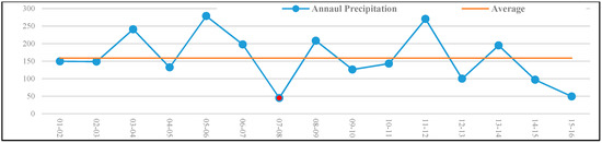 Since the water budget equation excluded the parameters of soil moisture and groundwater, the range of changes in the TWSC resulting from the water budget with the GRACE TWSC was different. In the studied area, rainfall was regarded as almost the only source of groundwater recharge. Therefore, increasing the amount of the stored water in underground reservoirs depends on the rainfall season. Then, the water storage changes were similar in terms of trend and frequency while they were different in terms of the range of changes. As illustrated in Figure 5, a negative trend in the GRACE TWSC was observed from 2008 onwards, leading to the separation of its time series from the water budget output. This negative trend with the slope of −0.72 resulted from the significant lapse of annual precipitation in this time period and the irregular withdrawal of groundwater in this highly populated catchment.