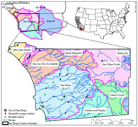 - Sandiegocounty.gov. San Diego County Rainfall-30 Year Annual Average Period of Record. 1971–2001. Available online: https://www.Sandiegocounty.Gov/content/dam/sdc/dpw/flood_control/floodcontroldocuments/average%20annual%20rainfall.Pdf (accessed on 19 December 2018).