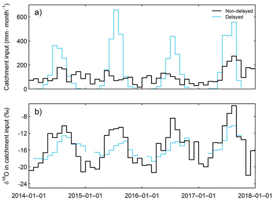 4.3.1. Modeling Catchment Water Input and its δ18O Value with ESCIMO