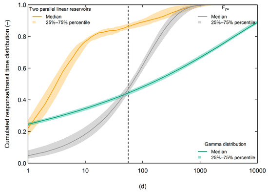- Hrachowitz, M.; Soulsby, C.; Tetzlaff, D.; Malcolm, I.A.; Schoups, G. Gamma distribution models for transit time estimation in catchments: Physical interpretation of parameters and implications for time-variant transit time assessment. Water Resour. Res. 2010, 46. [Google Scholar] [CrossRef]