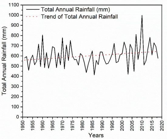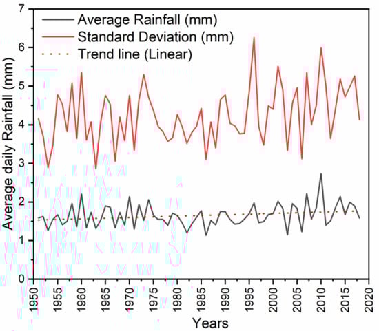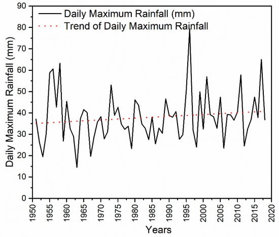 3.2.1. Trend Analysis of Daily Rainfall