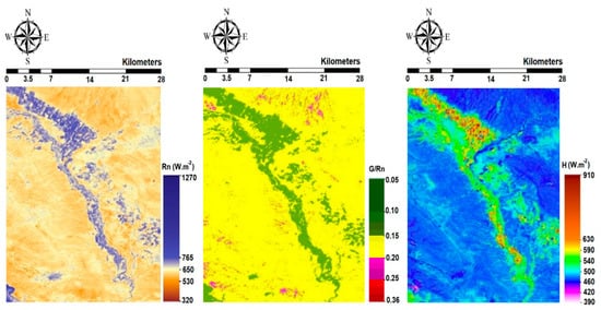where R is the reflectance in the red band and R′ is the reflectance in the near infrared band []. The sensible heat flux (H) is the rate of heat loss to the air by convection and conduction (Morse et al. []). It was obtained from Equation (9):