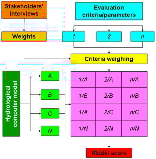 The prediction accuracy is not the only requisite that a user asks a model, because other characteristics influence the choice of software for practical use. Moreover, most of the model characteristics depend on the stakeholders’ needs and opinions. This study introduces a “performance matrix”, consisting of several evaluation parameters weighted by stakeholders’ opinions. We propose an evaluation framework of computer hydrological models based on a matrix, consisting of 10 “criteria” Figure 1.