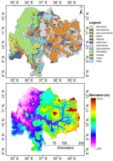 From Figure 2, the study basin mainly dominated by wooded grassland, followed by agro-pastoral, agriculture, and sylvo-pastoral. However, in the study basin, the natural vegetation cover is rapidly changing into the agricultural crop land. The deforestation of natural woody vegetation as well as the expansion of cultivated land are increasing in the study basin. Thus, the land use change over the basin can influence the temporal and spatial dynamics of surface runoff. For example, the conversion of the natural vegetation cover into the agricultural crop land will cause an increase in the surface runoff magnitude. Consequently, this will influence the type of probability distribution that has been identified in the region based on prior information. Thus, it is essential to frequently update the most suitable flood frequency prediction model considering the land use changes. Moreover, the topography of the study area shows that the elevation varied between 502 and 4133 m above mean sea level. From the topographic map, the small-scale catchments show a similar slope pattern. Conversely, the medium- and large-scale basins show the diverse slope patterns.
